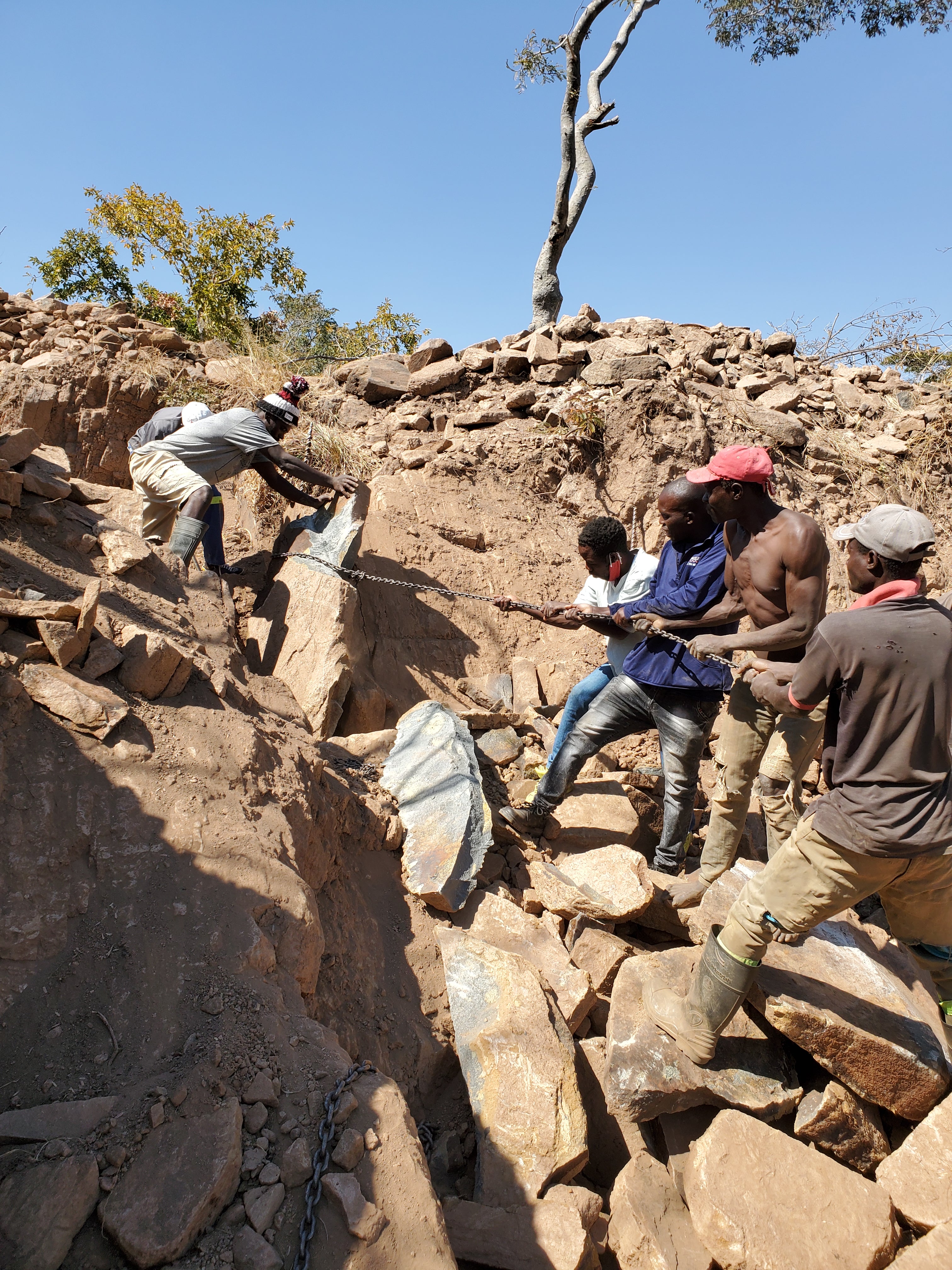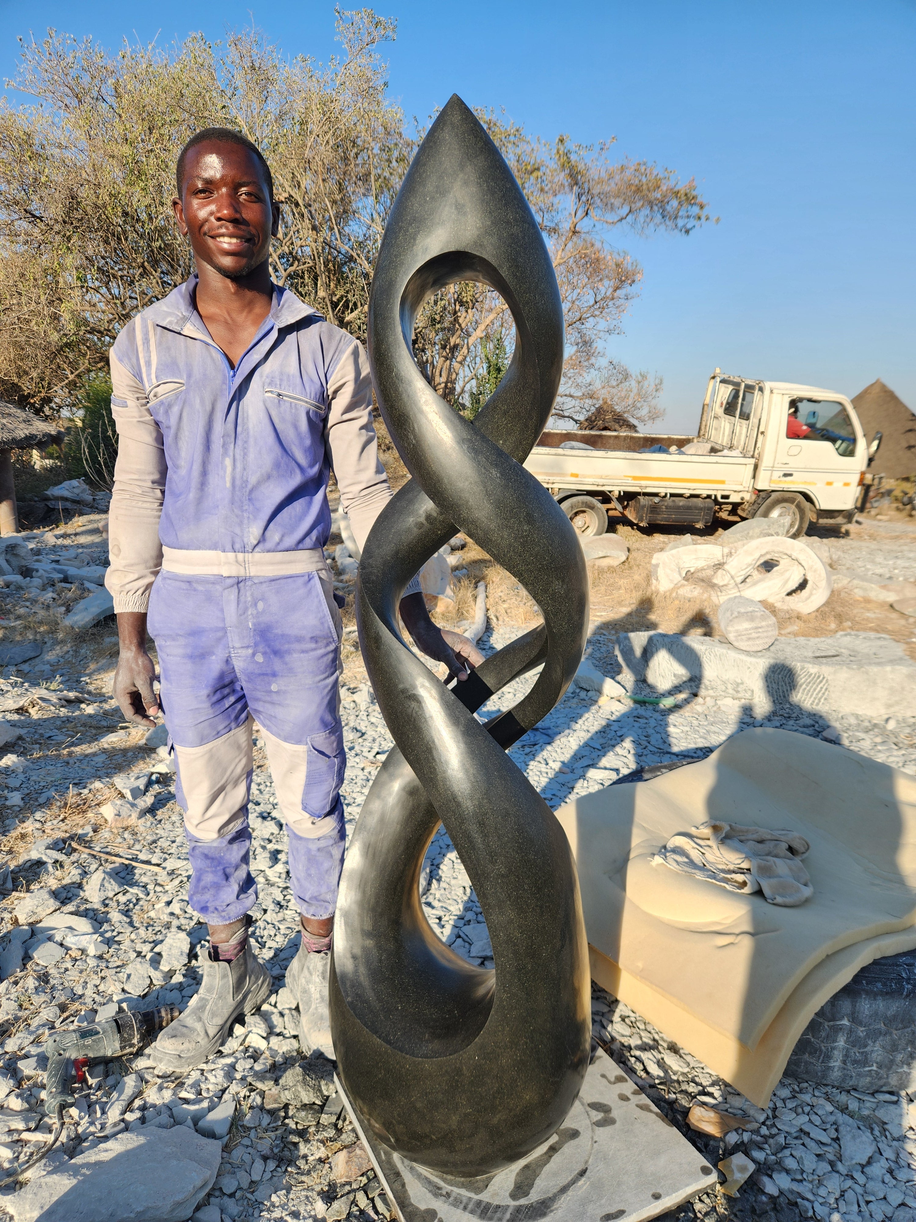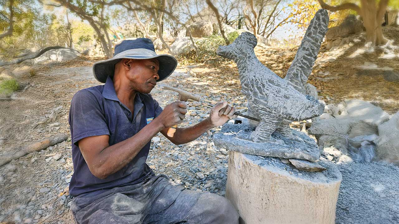 Quarried in the hills of different areas of Zimbabwe, stone sculpting has been an integral part of the Shona culture for many generations. The artist specifically selects his/her stone, usually based on its shape, or colors. They are then loaded onto a truck and carried hours away to the artist's workshop. Sometimes the artist already knows what type of sculpture he wants to create, but sometimes the artist brings out the design that he organically sees already there due to its shape.