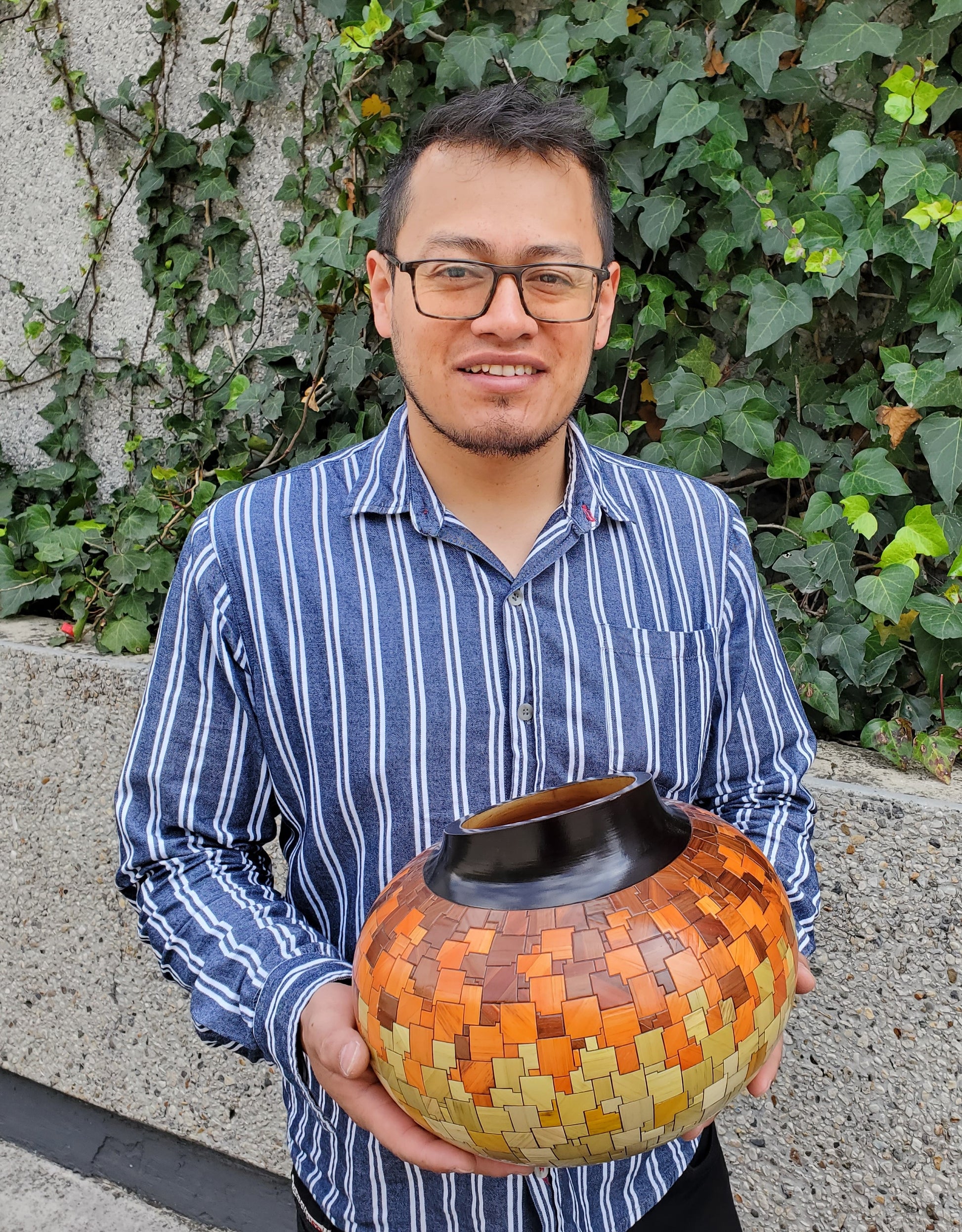 In the mountainous lands of the department of Nariño, plating in wheat chaff is one of the techniques developed by its artisans. This process consists of decorating wooden objects, covering them with the fine and golden fibers of the wheat chaff, collected as stubble after the harvests. After selecting the dry stems, the artisans delicately open them and flatten them using a stone. Once flattened, the stems can be stuck directly on a drawing sketched in the wood or form a sheet sticking the fibers on a sheet of special paper. This sheet is cut out according to the desired shape and adhered on the object. In some cases, the fibers are stained in colors or exposed to heat to darken. Although the technique of decorating wood with other elements such as hawksbill, bone or ivory is common since colonial times, the hands of expert craftsmen have been practicing inlay for four decades. With the wheat chaff, they create lines and curves, giving life to everyday and folkloric images such as