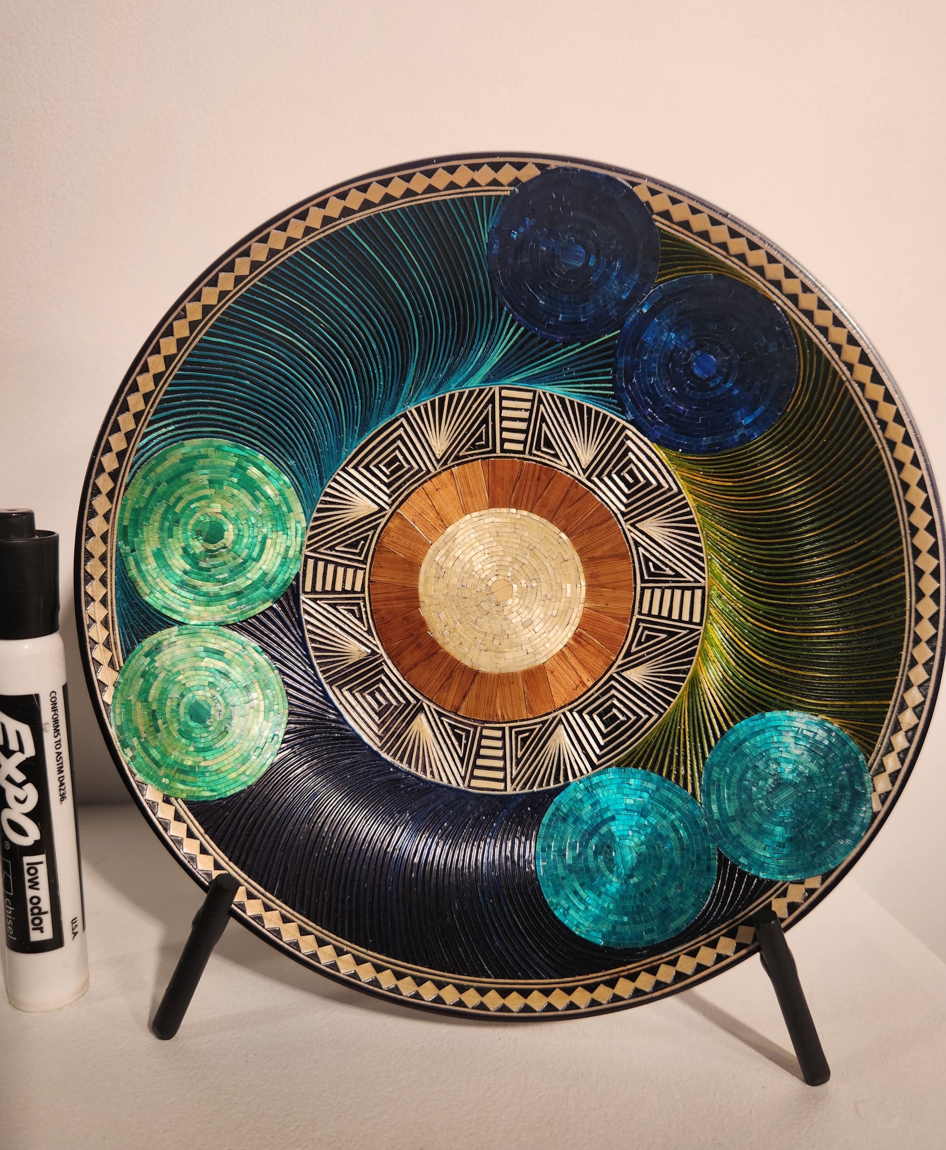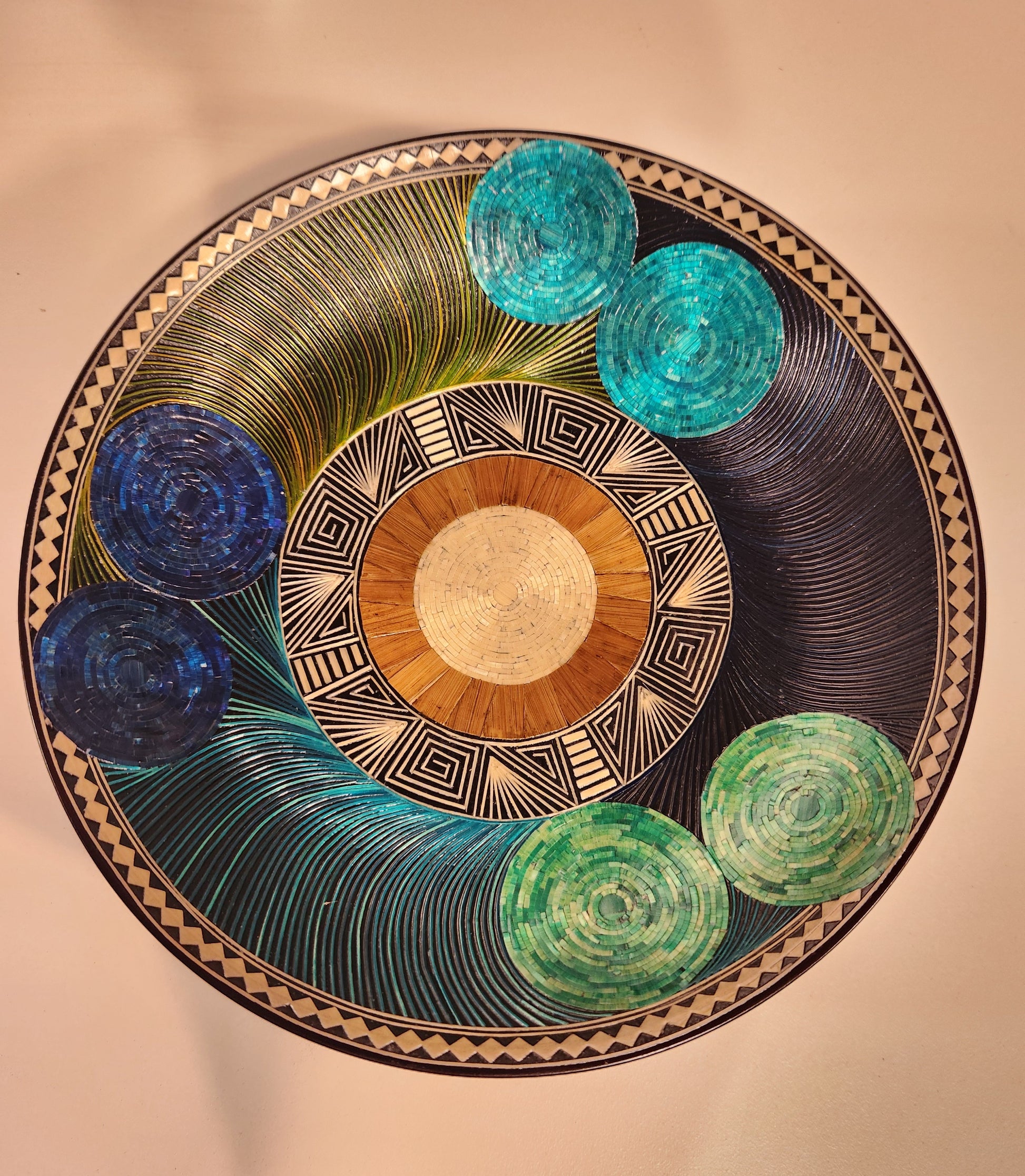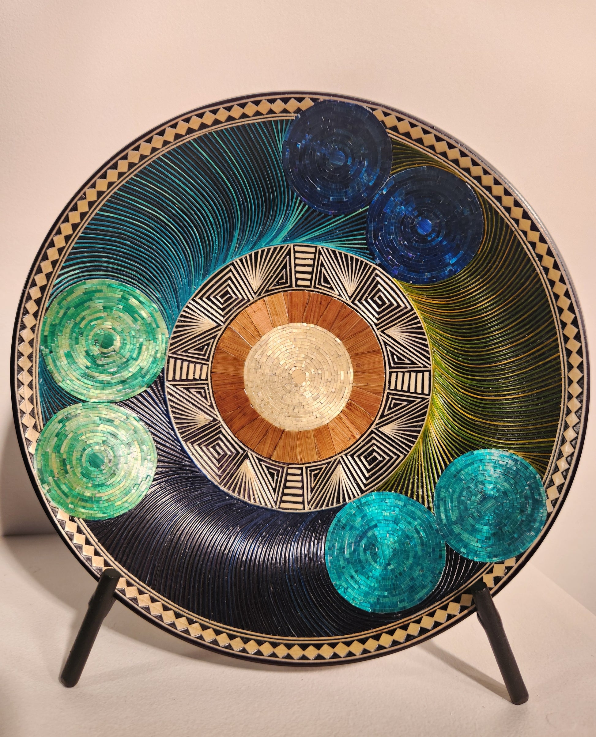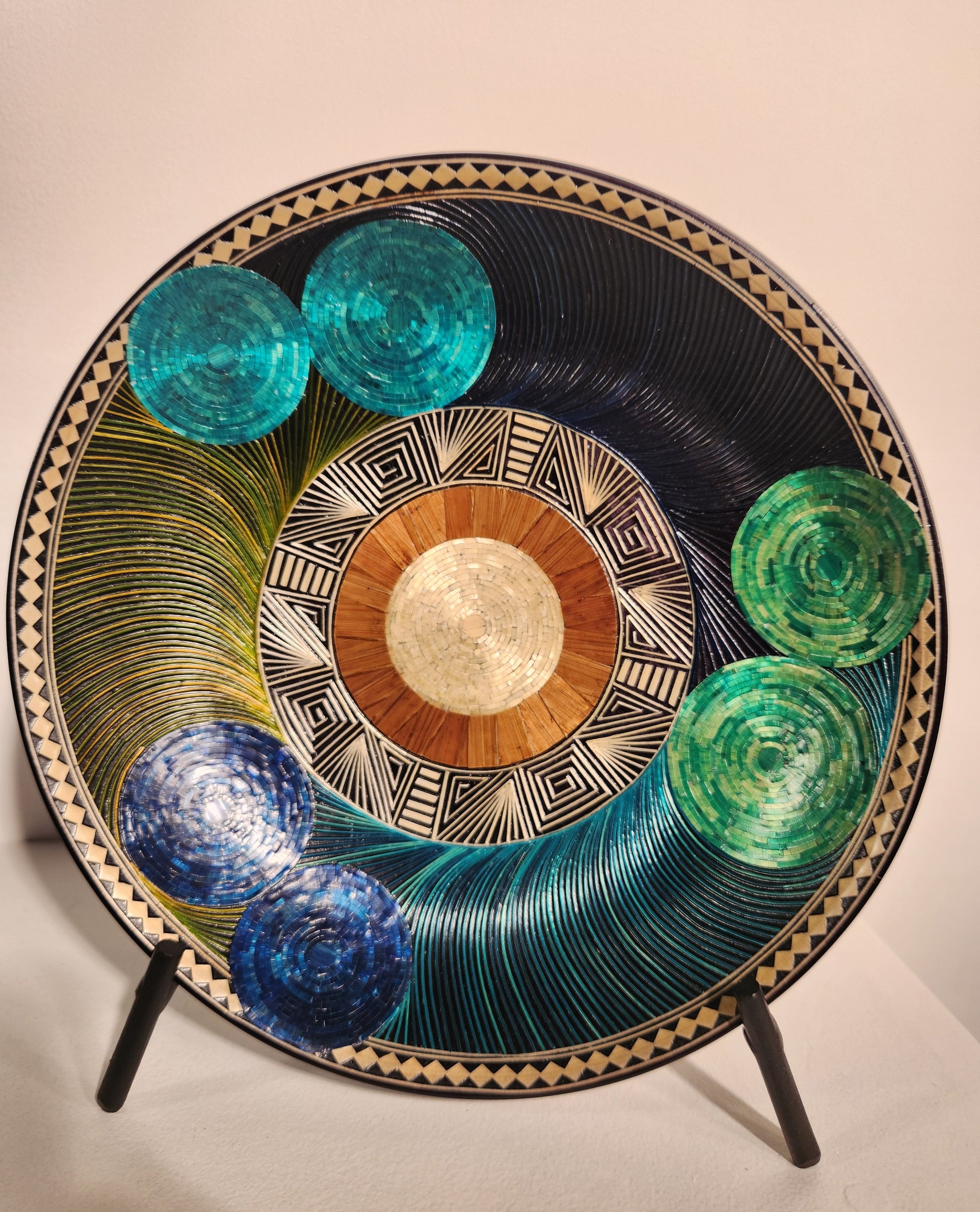 In the mountainous lands of the department of Nariño, plating in wheat chaff is one of the techniques developed by its artisans. This process consists of decorating wooden objects, covering them with the fine and golden fibers of the wheat chaff, collected as stubble after the harvests. After selecting the dry stems, the artisans delicately open them and flatten them using a stone. Once flattened, the stems can be stuck directly on a drawing sketched in the wood or form a sheet sticking the fibers on a sheet of special paper. This sheet is cut out according to the desired shape and adhered on the object. In some cases, the fibers are stained in colors or exposed to heat to darken. Although the technique of decorating wood with other elements such as hawksbill, bone or ivory is common since colonial times, the hands of expert craftsmen have been practicing inlay for four decades. With the wheat chaff, they create lines and curves, giving life to everyday and folkloric images such as