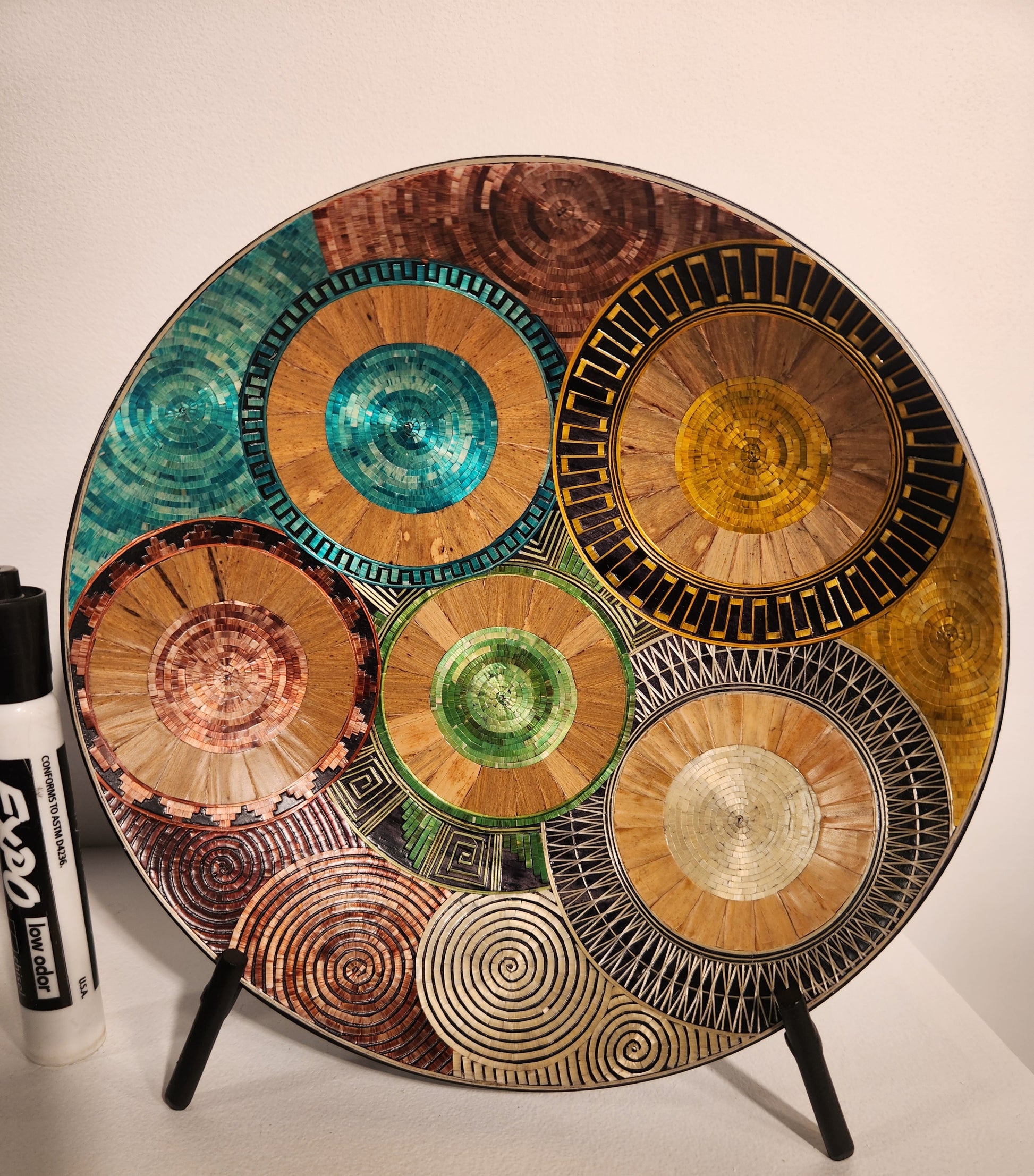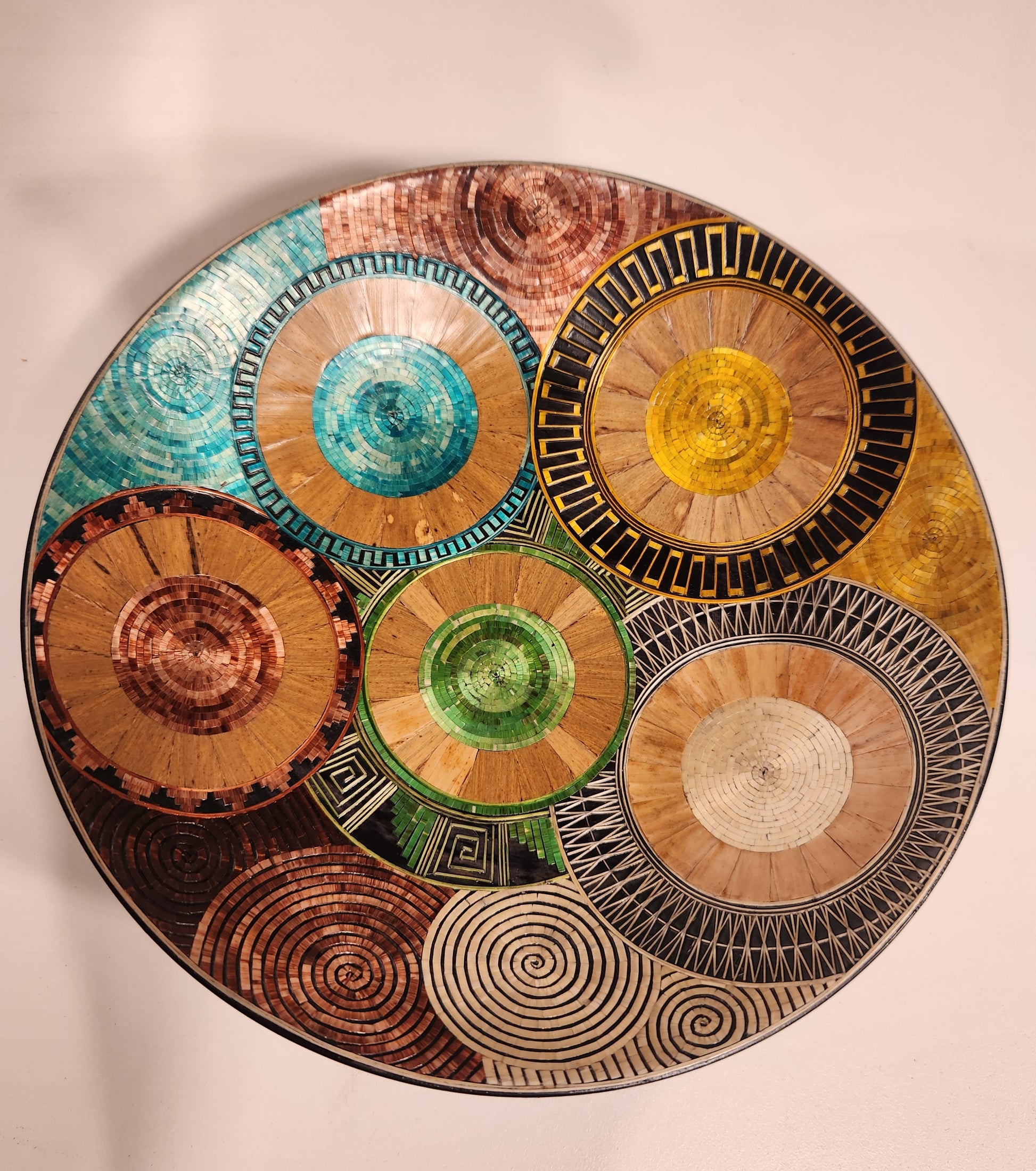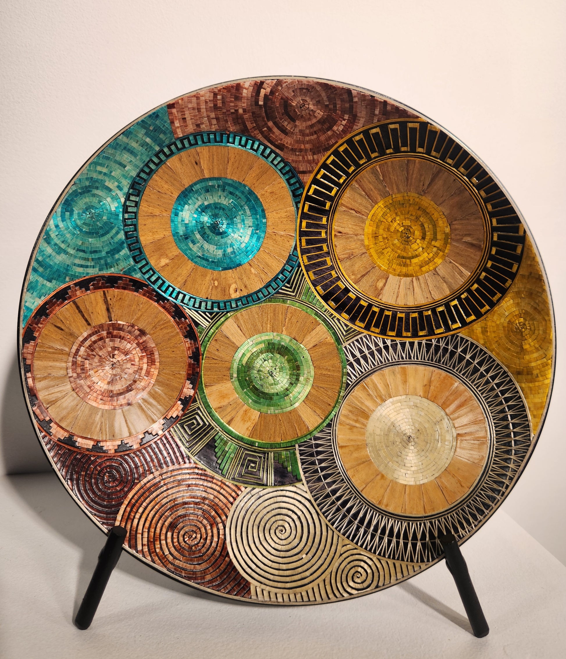 In the mountainous lands of the department of Nariño, plating in wheat chaff is one of the techniques developed by its artisans. This process consists of decorating wooden objects, covering them with the fine and golden fibers of the wheat chaff, collected as stubble after the harvests. After selecting the dry stems, the artisans delicately open them and flatten them using a stone. Once flattened, the stems can be stuck directly on a drawing sketched in the wood or form a sheet sticking the fibers on a sheet of special paper. This sheet is cut out according to the desired shape and adhered on the object. In some cases, the fibers are stained in colors or exposed to heat to darken. Although the technique of decorating wood with other elements such as hawksbill, bone or ivory is common since colonial times, the hands of expert craftsmen have been practicing inlay for four decades. With the wheat chaff, they create lines and curves, giving life to everyday and folkloric images such as